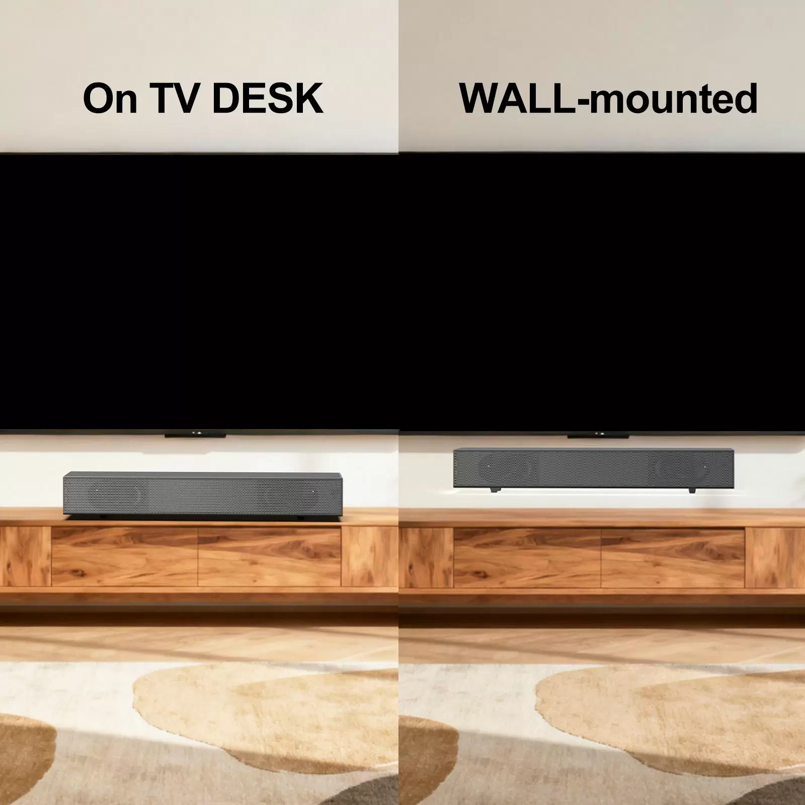 Easy Setup & Wall-Mountable: Setting up the TV sound bar is incredibly simple, allowing you to assemble your surround sound system in just minutes. Additionally, the soundbar supports wall mounting, saving space while enhancing your room’s aesthetics. Its clean and sophisticated design allows it to blend seamlessly into any home environment, elevating the overall ambiance.